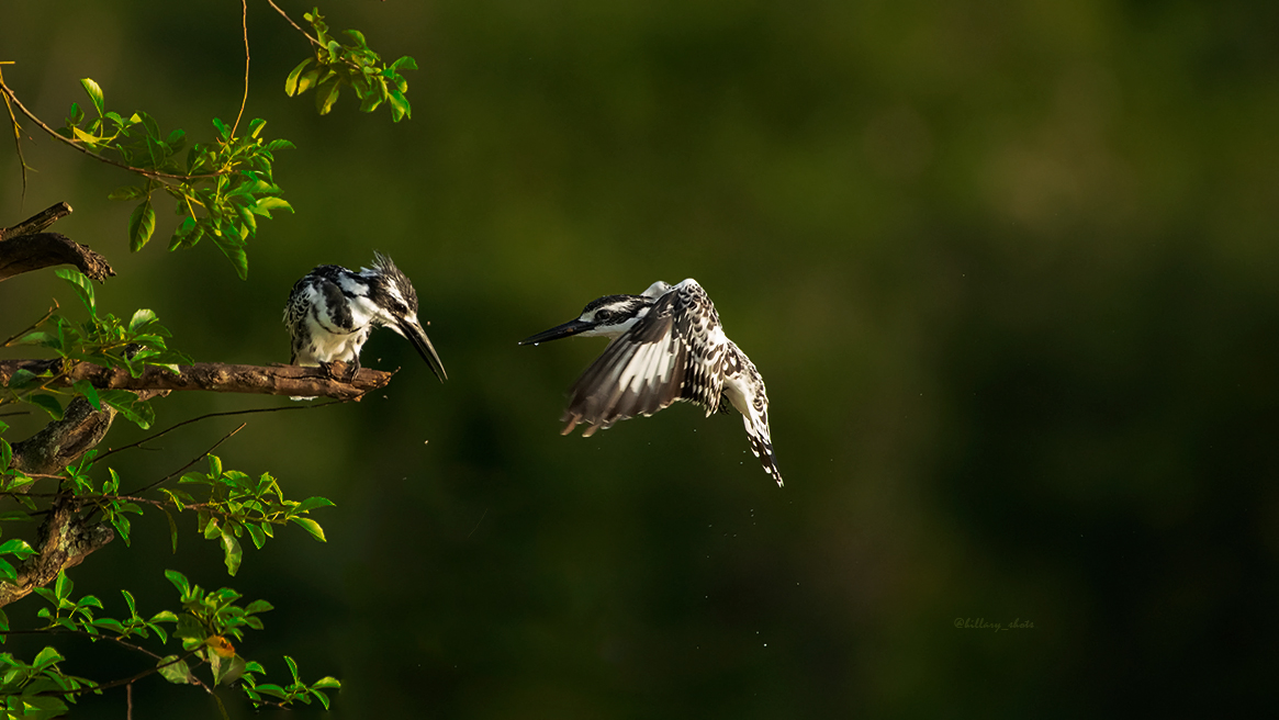 African pied kingfishers displaying their techniques